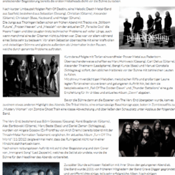 The Very End aus Essen machen schließlich da weiter, wo Ihre Vorgänger aufgehört hatten. Die 2005 gegründete Band begeisterte mit coolen Sprüchen von Frontmann Björn Goosses und spielten sich in einen wahren Rausch. Neben der Gesangseinlage des Sauerlandliedes aus dem Publikum, bildete der Auftritt für den einen oder anderen den Höhepunkt des Abends. Dem Cover des „Immigrant Song“ von Led Zeppelin standen eigene Songs wie „Hole in the Sun“ oder „Splinters“ in keiner Art und Weise nach.